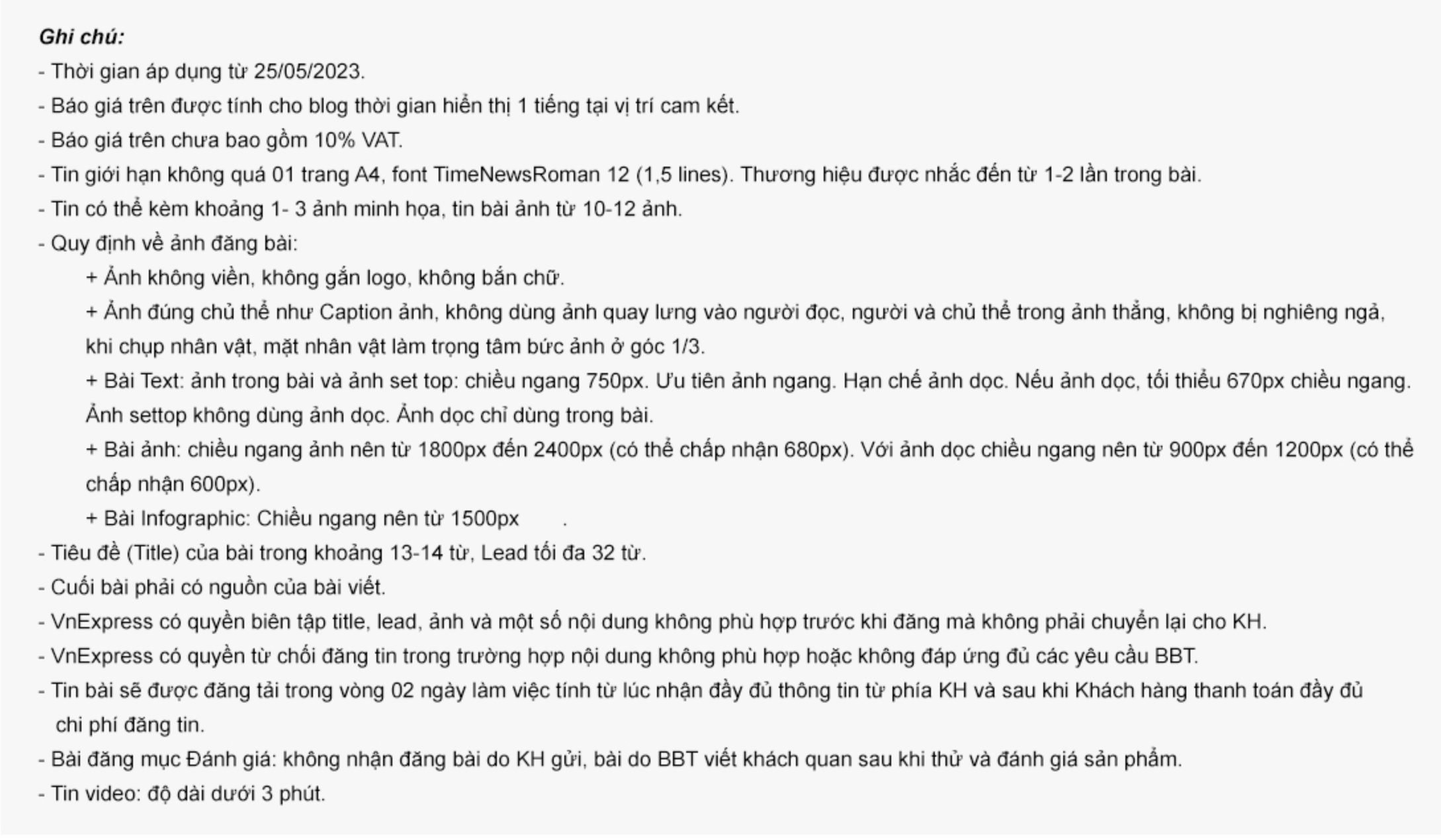 Bảng giá quảng cáo báo Vnexpress