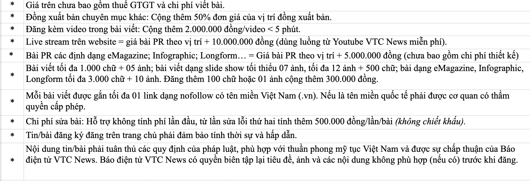 Bảng giá quảng cáo báo VTC